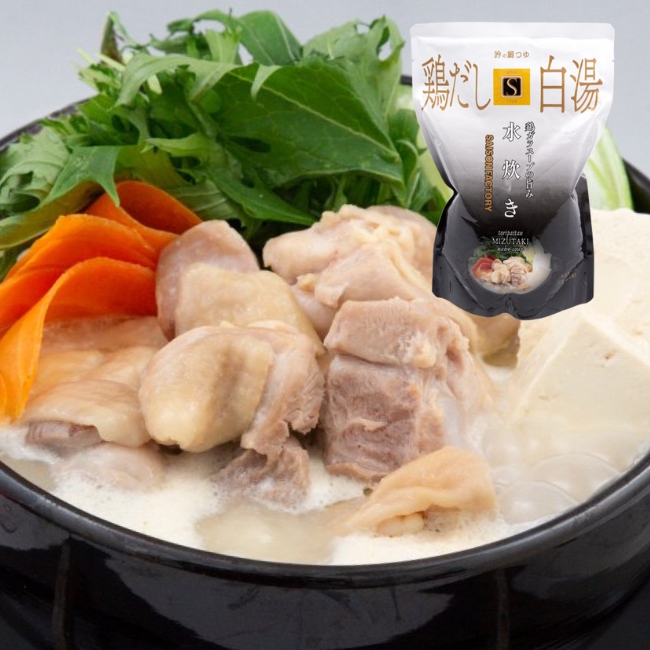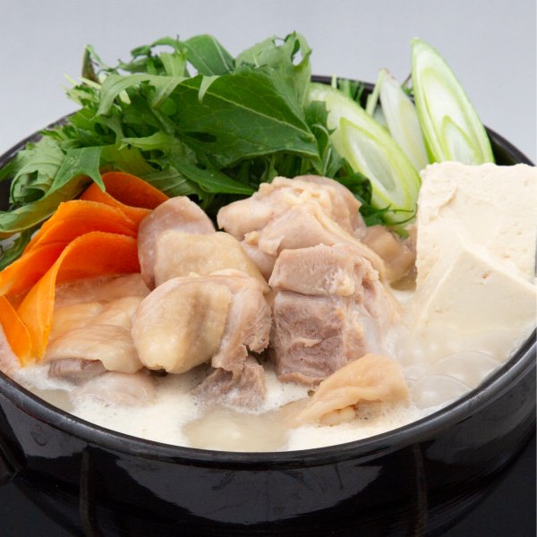 鶏本来の旨味を極めた白湯スープと和風だしを合わせた、まろやかなストレート鍋つゆ。2種類の鶏エキスを使った、コクと深みのある濃厚なスープに鰆・昆布・鰹の旨味を加え、まろやかなコクのあるつゆに仕上げました。鶏肉を多めに入れると、より濃厚な水炊きをご堪能いただけます。