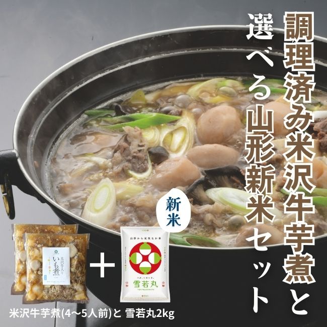 調理済み米沢牛芋煮(4~5人前)と選べる山形新米セット【冷蔵】