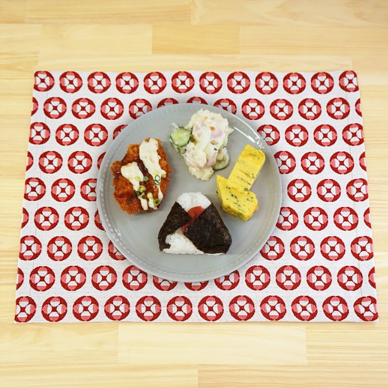 食卓を彩る、綿100%のランチョンマット。織物ならではの凹凸(テクスチャ)があり、リバーシブルのように裏面にもきれいに降りあがっているのが米織小紋の特徴です。