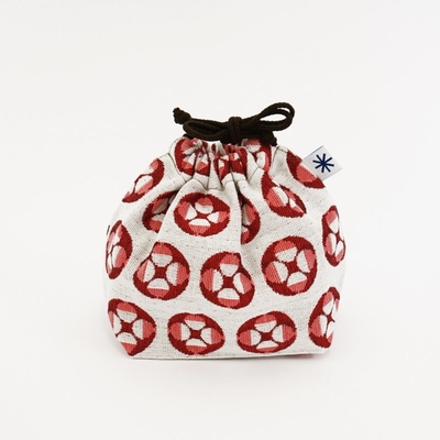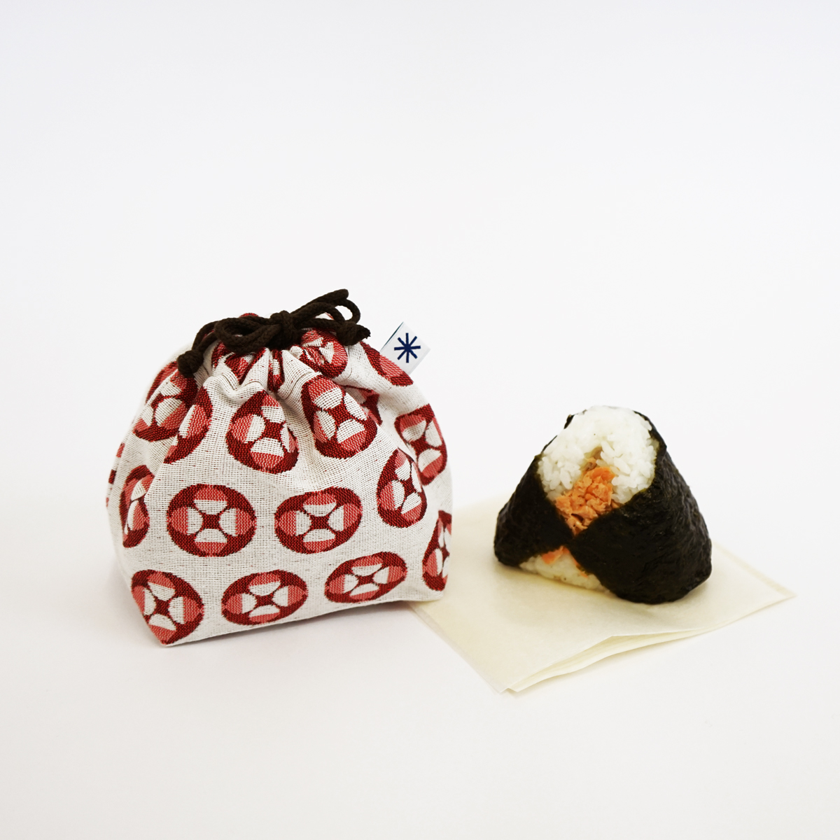 その名のとおり、おにぎりがすっぽり入る巾着です。巾着の紐を絞ったときに、おにぎりの角が潰れにくいようマチが工夫されています。カバンの中でもかさばらない絶妙なサイズ感。