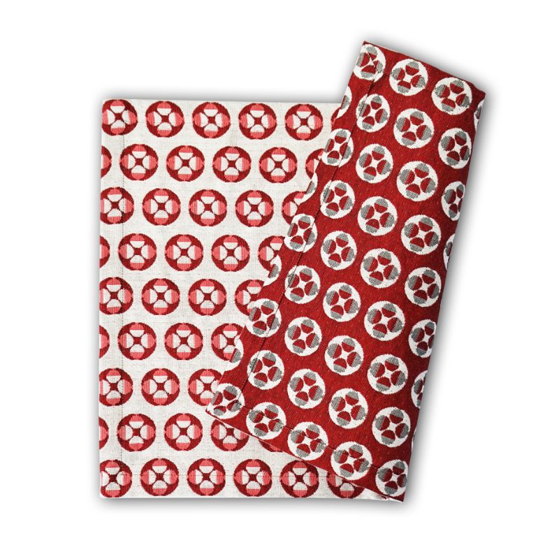 食卓を彩る、綿100%のランチョンマット。織物ならではの凹凸(テクスチャ)があり、リバーシブルのように裏面にもきれいに降りあがっているのが米織小紋の特徴です。