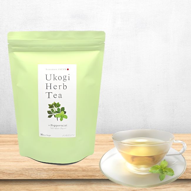 「うこぎハーブティー・ペパーミントブレンド」は、うこぎ茶葉にペパーミントを加え、スッキリ爽やかな味わいに仕上げました。
