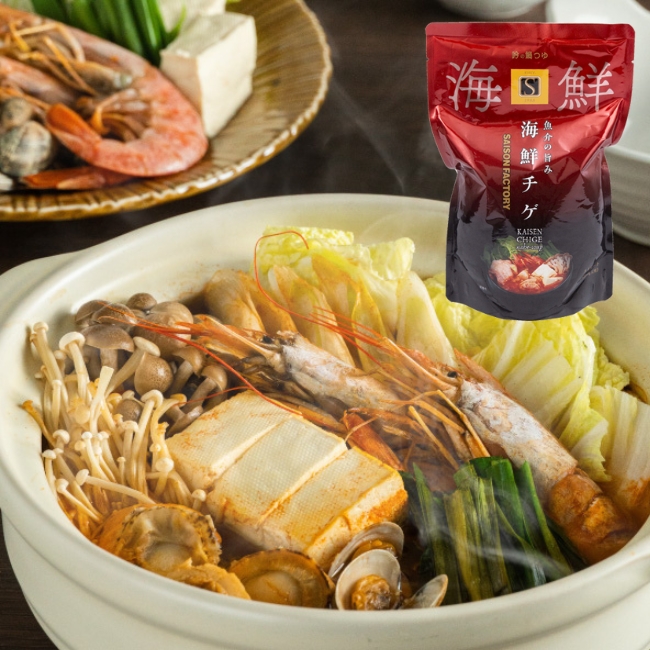 寒い季節にピッタリ! 濃厚な海鮮だしと鶏の旨味、唐辛子の辛味がおいしいチゲ鍋ストレートつゆです。