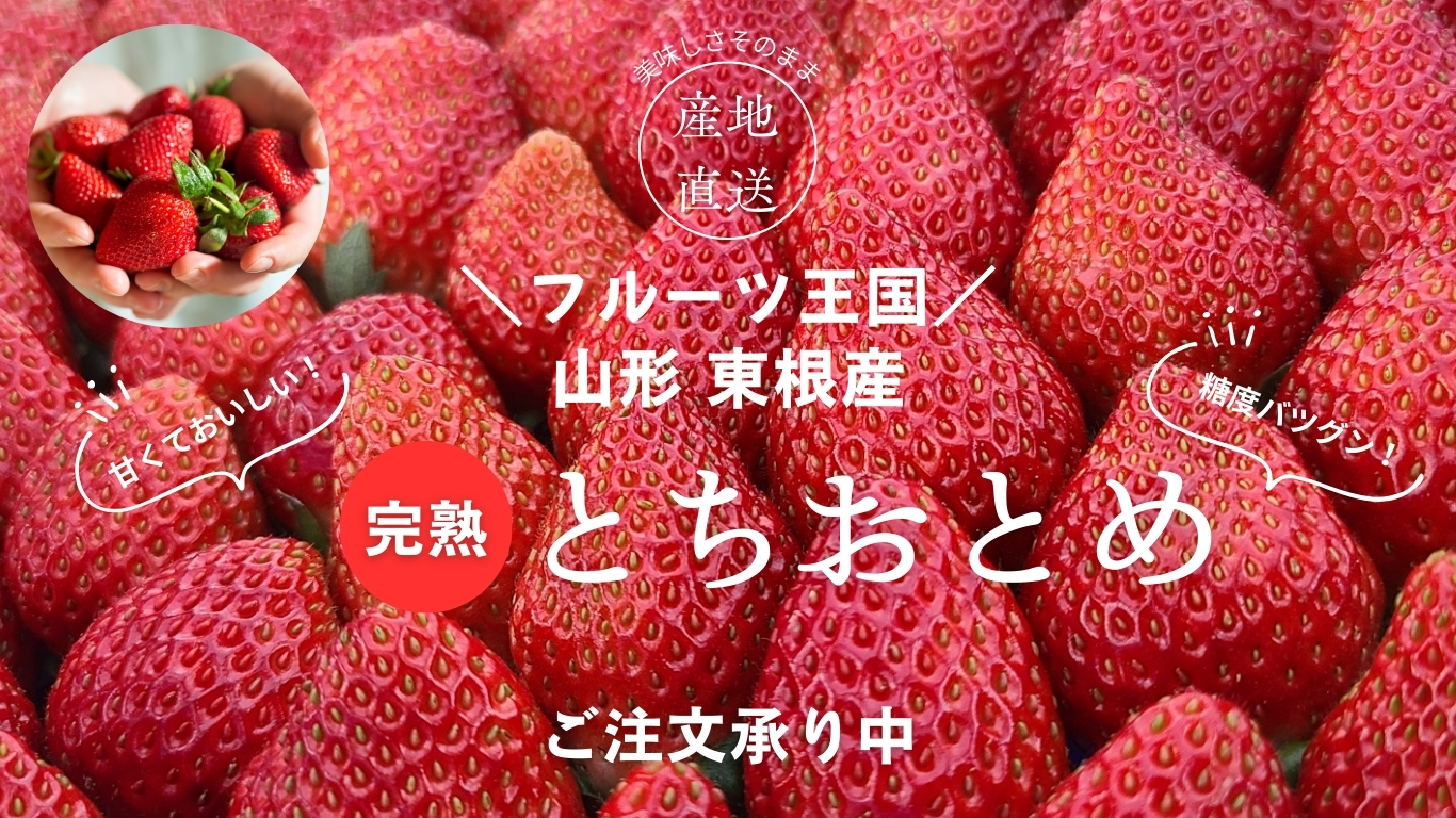 山形県東根市は、夏季はさくらんぼ、冬季はいちご栽培が盛んな地域で、特に東根市神町で組織される「神町いちご倶楽部」のおいしいいちごは、高品質な「神町いちごブランド」として知られ、12月の終わりから3月の上旬くらいまでが最盛期です。