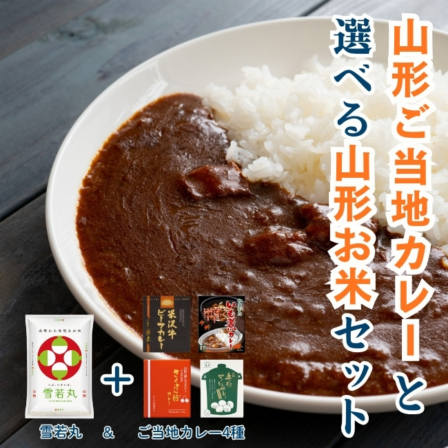 カレー好きにはたまらない!4種類の山形ご当地カレーと、山形のおいしいお米を一緒にお届けする『山形ご当地カレーと選べる山形新米セット』です。