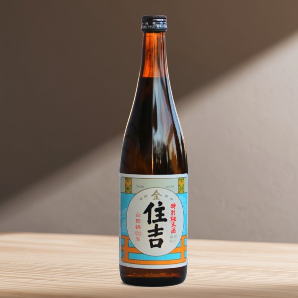 「特別純米酒 金・住吉」は、酒米の王様である兵庫県産「山田錦」を100%使用し、吉野杉の樽で熟成させた重厚な樽酒です。
