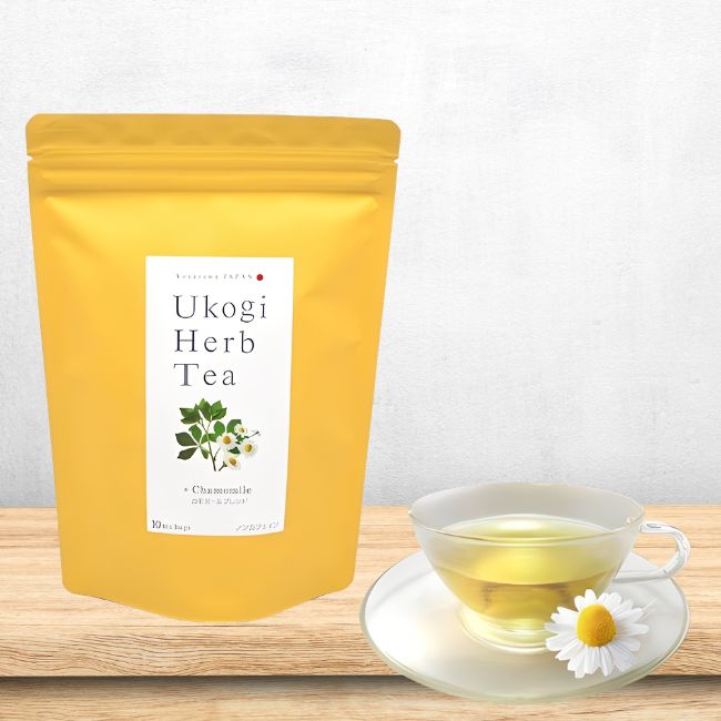 「うこぎハーブティー・カモミールブレンド」は、うこぎ茶葉にカモミールを加え、優しい味わいにまとめました。